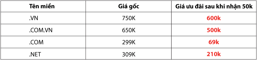 Chưa hết, chương trình “ĐẠI TIỆC TÊN MIỀN” mang đến khuyến mãi không thể bỏ lỡ. Qua đó khách hàng sau khi nhận 50k tiền khuyến mãi cài đặt Nhân Hòa App sẽ có thể sở hữu ngay những tên miền phổ biến với mức giảm giá vô cùng sốc chỉ từ 69k.
